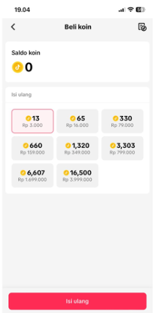 - Tentukan Jumlah Koin: Pilih jumlah koin yang ingin Anda beli. TikTok biasanya menawarkan beberapa paket koin dengan harga yang berbeda-beda.