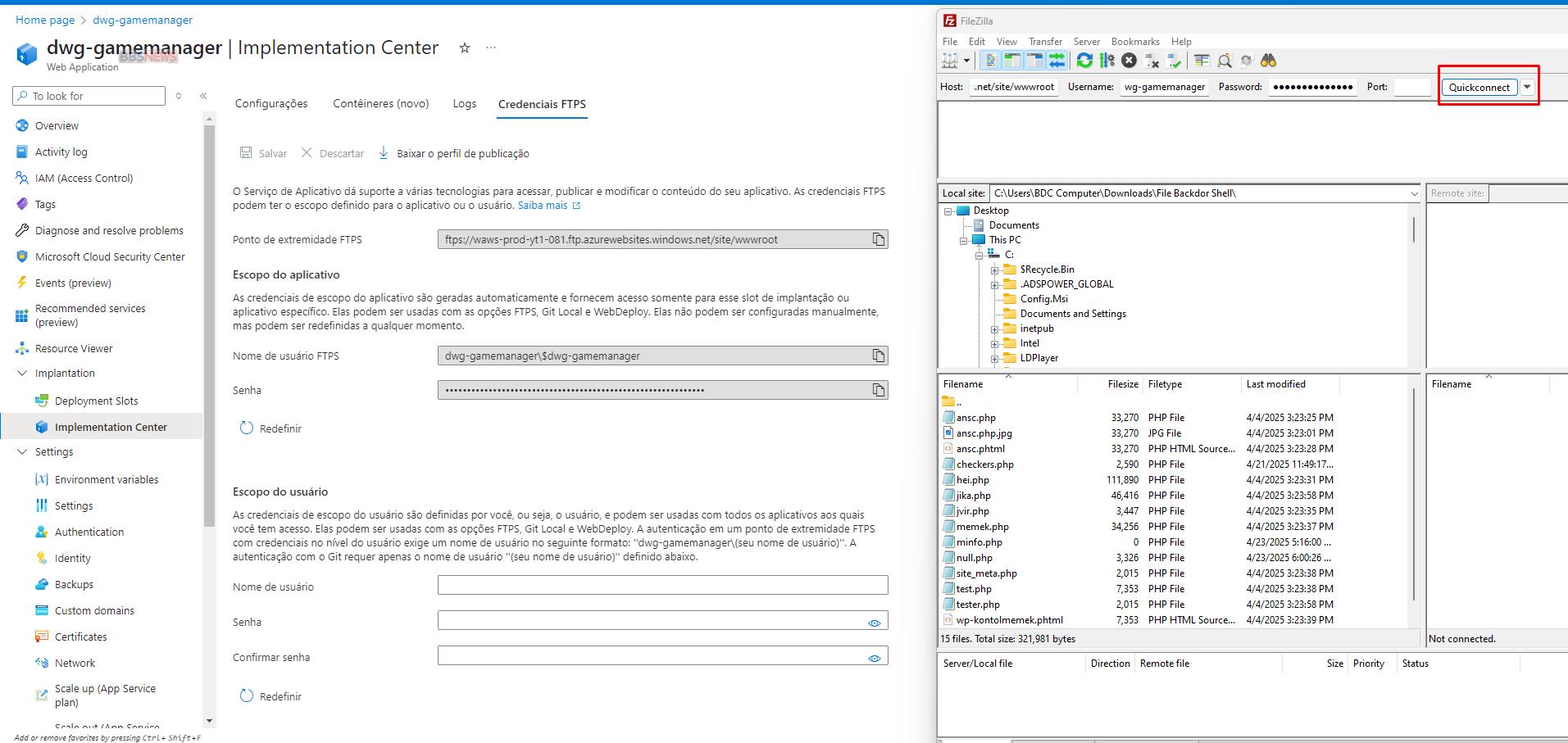 bagian kotak yang di sebelah kanan tersebut itu ada file bawaan dari azure, kemudian di sebelah kiri adalah file backdor shell yang mau di upload di file zila, kalian lalu “klik kanan” untuk upload file, abis itu selesai kalian cek dan done.