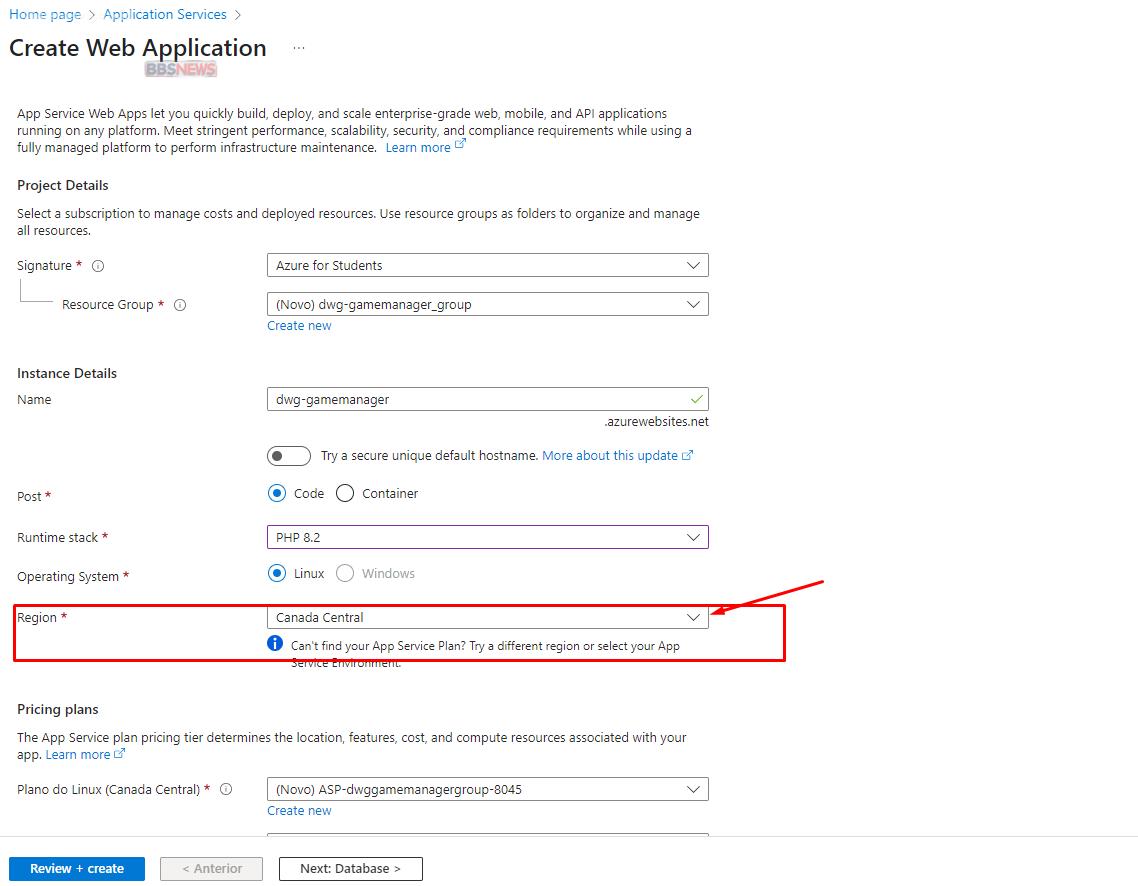 7.Kemudian Kalian Pilih Region Country Server, disini bebas kalian mau pilih, saya pilih buat contoh aja region “canada central”